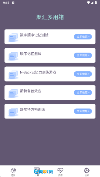 1. 记忆页面设有数字顺序记忆测试、顺序记忆测试、N - Back记忆力训练游戏、斯特鲁普效应训练以及舒尔特方格训练。