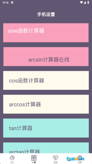 3、计算页面具备sine函数计算器、arnsin在线计算器、cos函数计算器、arccos计算器等功能。
