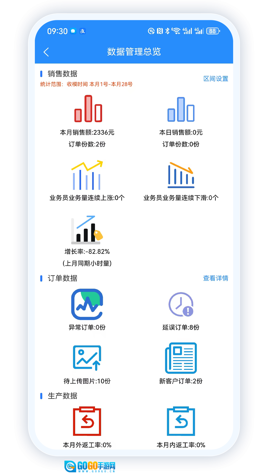 3、数据精确且可控,能够实时统计销售额、返工率、订单进度等核心数据,为精细化运营提供有力支持。