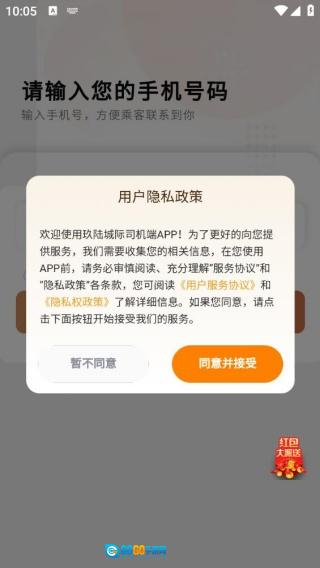 2. 用户隐私协议弹出,点击“阅读并接受”后,进入登录界面。