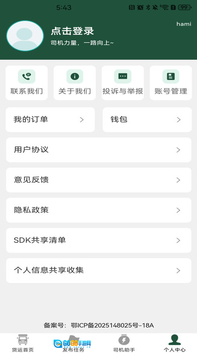 3、成功登录后,会进入工作主界面,在此界面能够实时查看货源信息以及运单动态。