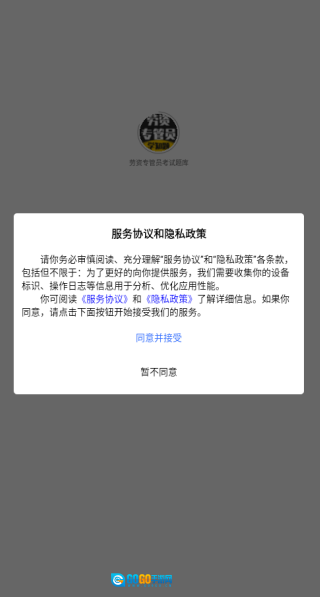 1、安装完成后打开软件,点击“同意并接受备考服务协议”。