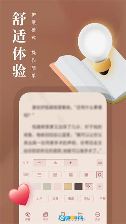 1. 书签、调亮度、换背景、跳章节、滚屏阅读等便捷功能,让大家的阅读体验更加舒适。