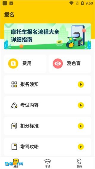 3. 完成选择后,既能够在线学习摩托车相关知识,还可以开展模拟考试。