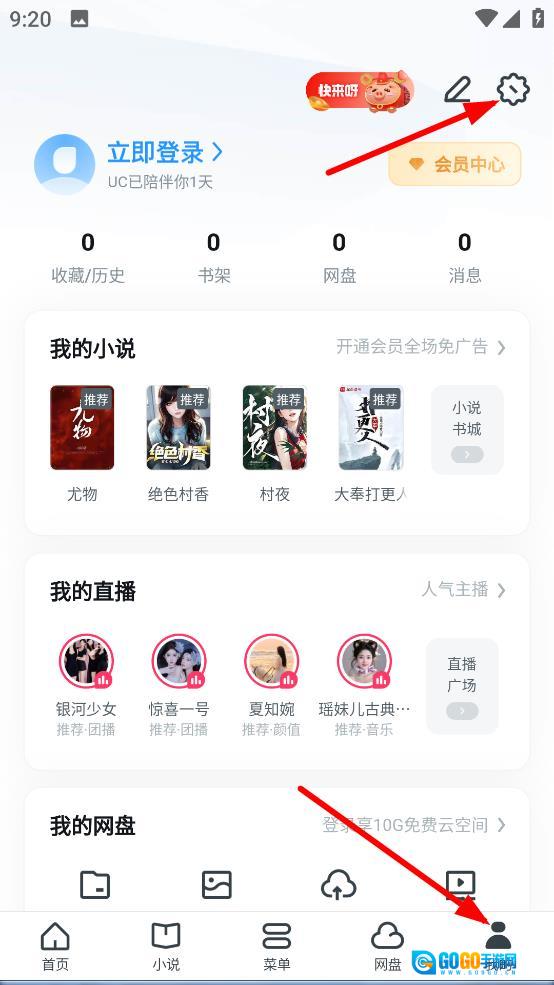 1、在本站通过UC浏览器进行安装,安装完成打开UC浏览器,点击右下角【我的】,再点击右上角【设置】即可进入。