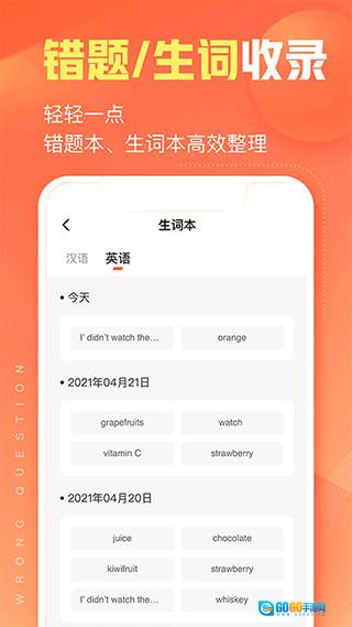 3、能够自动归集学习过程里标记的生词与错题,并智能制定复习计划。