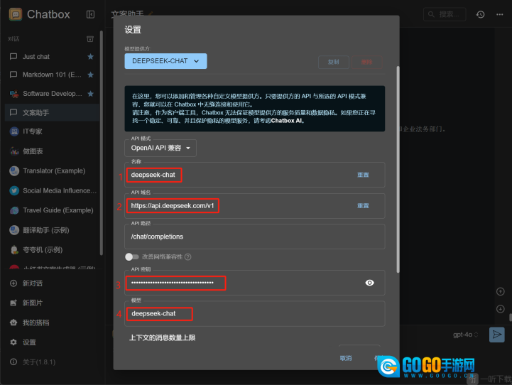 Chatbox作为一款能在多个平台使用的聊天软件,只要对DeepSeek API进行配置,就能让它摇身一变,成为功能强大且随时相伴的AI助手。