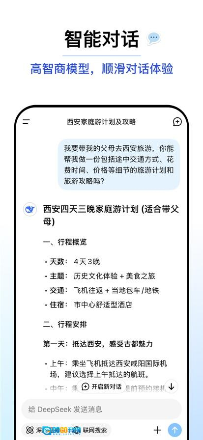 DeepSeek是杭州深度求索开发的一款多功能人工智能助手软件。它一经开源,便在海内外引发强烈反响。其搭载的DeepSeek-V3大模型,总参数超过600B ,多项性能指标与海外领先模型相当。它能以更快的速度、更全面强大的功能为你解疑答惑,集成了智能问答、语言翻译、文本生成、语音识别与合成、数据分析及个性化推荐等功能。该软件支持多平台使用,界面简洁友好,具备强大的学习能力与高度定制化特性。凭借高效便捷的操作、精准的回答及个性化服务,DeepSeek赢得了广大用户的赞誉,是一款值得信赖的AI工具。