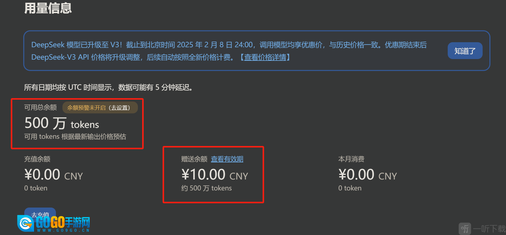 首次完成注册并登录后,点击DeepSeek API获取网址:https://platform.deepseek.com/ ,即可免费获得为期一个月的500万Tokens 。