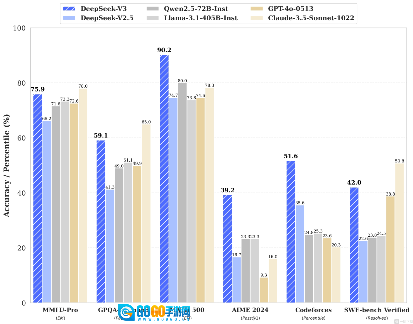 在人工智能范畴,模型的性能与能力始终是评判其价值的关键指标。最近,DeepSeek-V3 在诸多评测里成绩出色,胜过了 Qwen2.5 - 72B、Llama - 3.1 - 405B 等其他开源模型,而且与全球顶尖的闭源模型 GPT - 4o 以及 Claude - 3.5 - Sonnet 水平相当。下面是呈现的能力对比图: