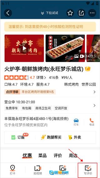 1、在首页的各类分类里,挑选出你想要点评的店铺所在分类,比如美食分类,然后点击进入该店铺页面。