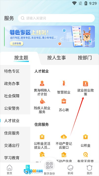 3、能够发现这个界面上存在一个“就业创业政策”。