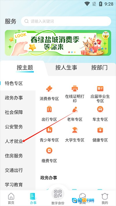 2. 进入该页面后,点击“人才就业”。