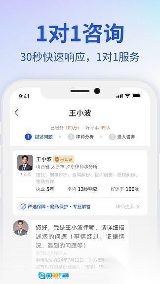 1. 实时且全天候在线的法律服务平台,可提供最为权威、精准的法律咨询。