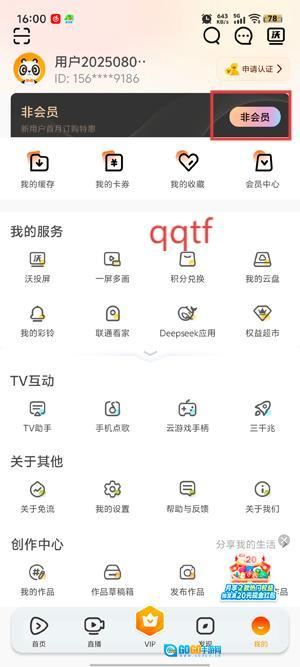 请开启您的5G宽视界客户端,于个人中心处轻点会员功能选项。