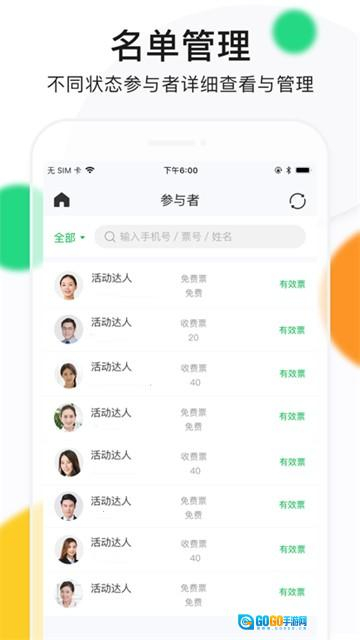 4、高效验票流程:通过快速扫描或高效搜索的方式完成验票签到,随即实现高效签到入场。