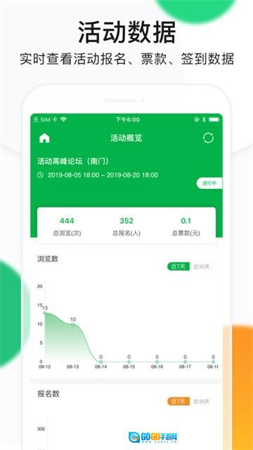 2. 数据实时呈现:可实时查看报名数据、票款数据、待审核数据以及验票数据,让您轻松掌握活动数据情况。