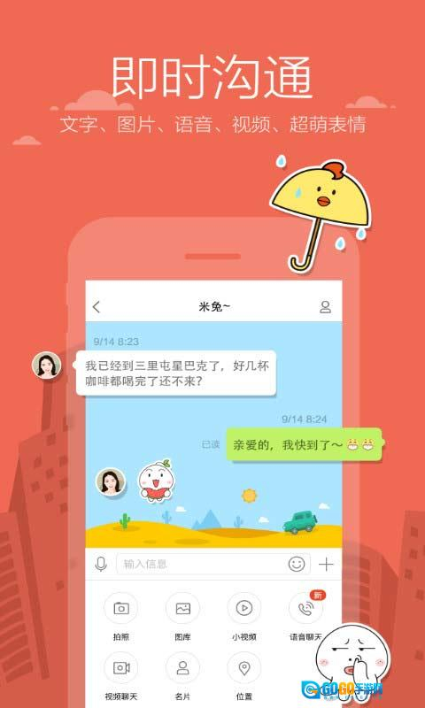 跨越时代的沟通方式,融合视频、语音、短信与图片于一体。