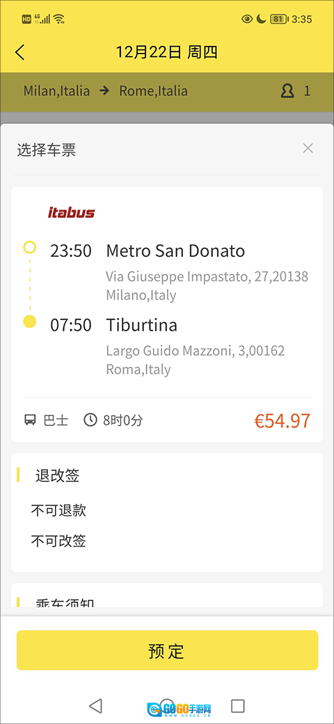 3、紧接着,待清晰看清车票内容后,便能够点击预定。