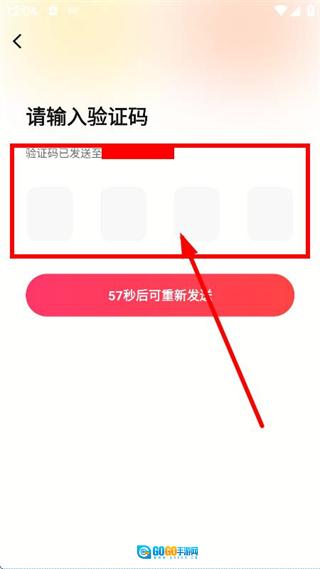 4、进入验证码输入界面后,填入短信所收到的验证码,即可完成账号登录步骤。