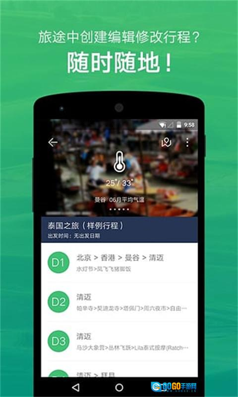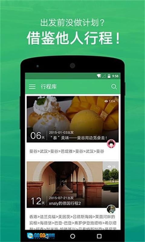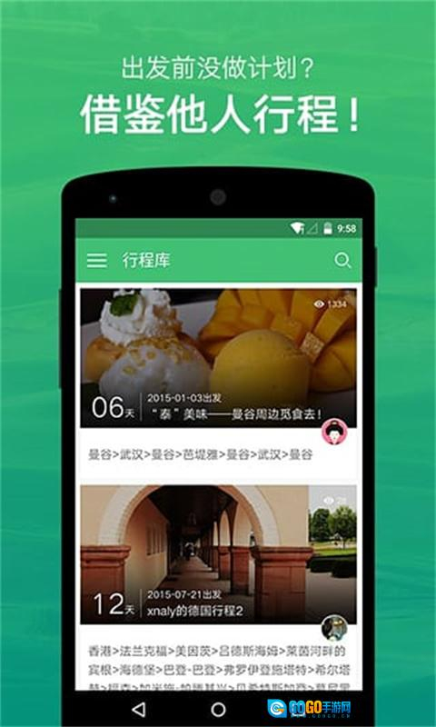 4、坐拥海量数据,打造精品行程。境内外超200个国家、10000余座城市,几百万条境外行程随心搜索、随意复制。无论你是因懒犯愁,还是因忙犹豫,都无需顾虑,旅行就该如此,说走就走!