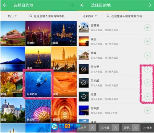 2. 挑选出行的国家和城市。