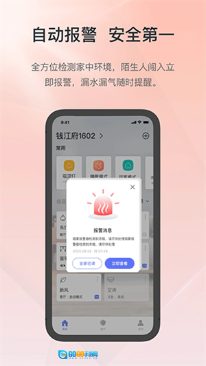 离家一键开启传感报设备,通过随时随地领路智慧安防