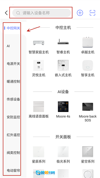 2、在以下页面中,你可以通过左侧导航栏查找想要连接的设备类型,也能在顶部的搜索栏输入设备名称进行搜索。