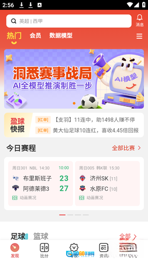 4、每日推送前沿足篮球资讯,包含多维度赛事前瞻、赛中实时进球播报以及赛后详尽数据统计。