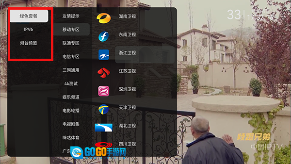 2、点击左侧屏幕可以唤起频道列表。