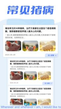 这款应用整合了丰富的生猪疾病防控方案,使用者能便捷地获取并掌握相关的专业防治知识。