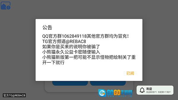 2、进入软件后可以看到公告写明了账号可以随便输入即可。