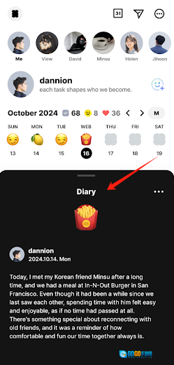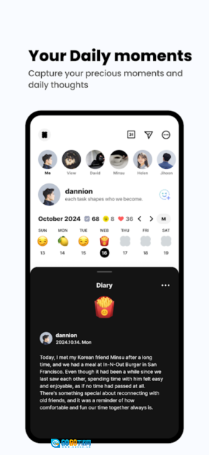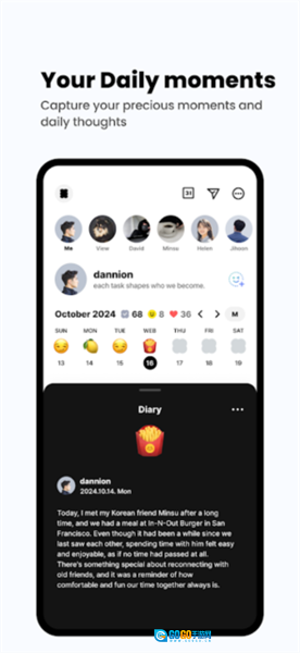 1、支持每日日记,可用表情签名表达当天感受,帮助用户记录情绪与生活点滴。