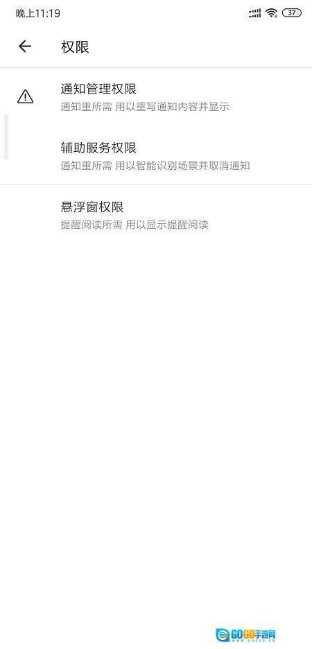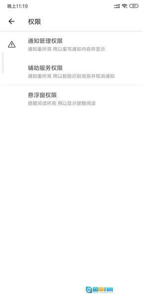 3、悬浮窗权限:开启后,当收到阅读提醒时,相关内容将以悬浮窗的方式呈现。