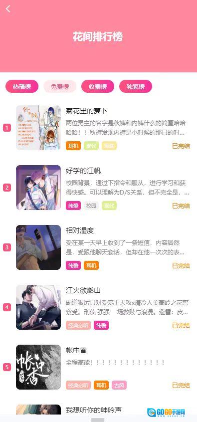 花间FM这款娱乐广播剧神器致力于为您打造丰富多元的听觉内容体验。应用内汇集众多流行剧集,支持在线搜索各类广播主题,还能根据个人喜好自定义相关功能,让操作更贴心。所有资源均为免费提供,您可以轻松按兴趣查找,每日畅听最新更新的广播剧集,享受天天有惊喜的收听乐趣,听得满意又开心。