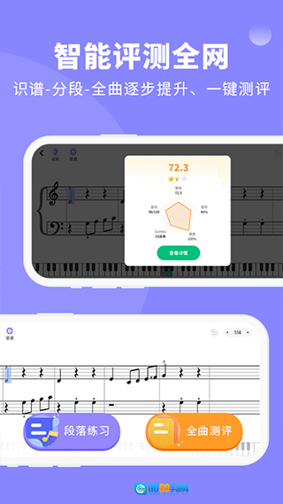 3、智能评分系统:围绕准确性、节奏稳定性、连贯性等维度,生成多维度的评分报告。