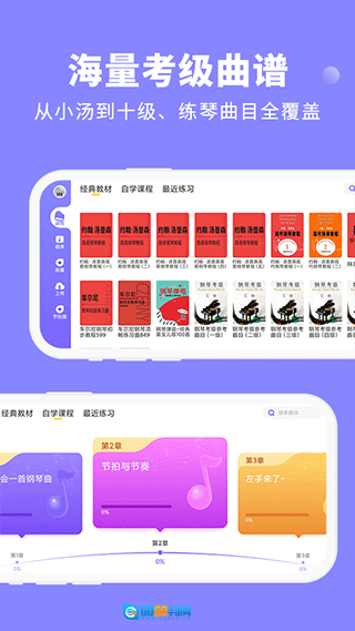 2音乐库与教学内容同步适配,包含市面上常见的钢琴教学用书以及《小汤普森钢琴教程》《拜厄钢琴基本教程》《车尔尼钢琴练习曲》等经典乐谱资源。