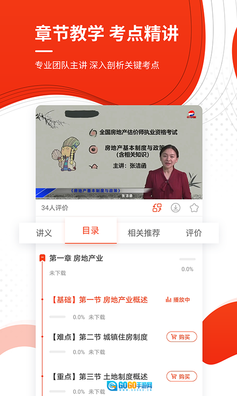 4观看课程视频时,可切换到“目录”查看章节设置,点击想要学习的章节就能进入对应的内容,并且支持按照基础、难点、重点进行分类学习。