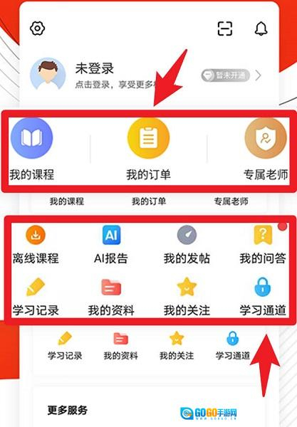 5进入个人页面后,你可以管理课程、订单、专属老师等相关信息,还能查看学习记录、学习资料,使用发帖和问答功能,从而全面掌握自己的学习进度。
