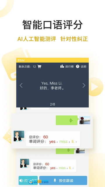2、不同的测评功能等你体验,也可以自定义选择和朗读。