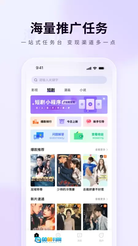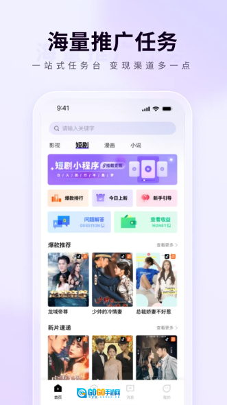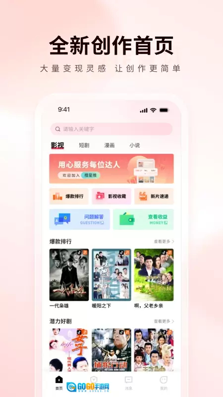 为短视频创作者解决创作难题与变现需求的服务平台,整合了短剧、电影等多元业务板块,持续拓展内容边界,为创作者提供更多发展可能。平台从创作与推广的实际需求出发,通过内容聚合与工具赋能,助力创作者更便捷地制作内容、更高效地优化作品。多业务布局结合丰富内容生态,构建起多元化的变现与盈利路径,让创作者的价值转化拥有更多选择。期待更多创作者加入这个充满机遇的平台,开启创作与变现的新旅程。