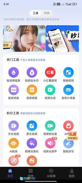 4针对老旧、模糊的照片与视频素材,用户可通过上传操作,借助智能AI技术对其进行画质修复处理,还原内容原本的清晰质感。