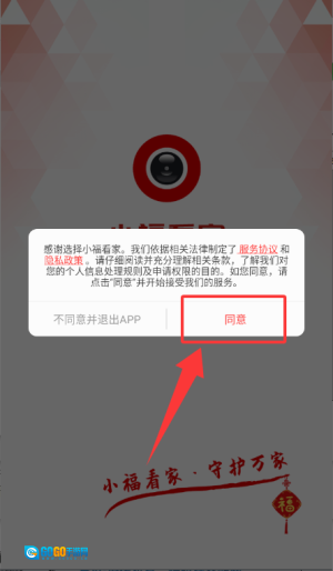 1若要进入应用,需在弹出的服务协议与隐私政策确认界面中点击“同意”按钮。