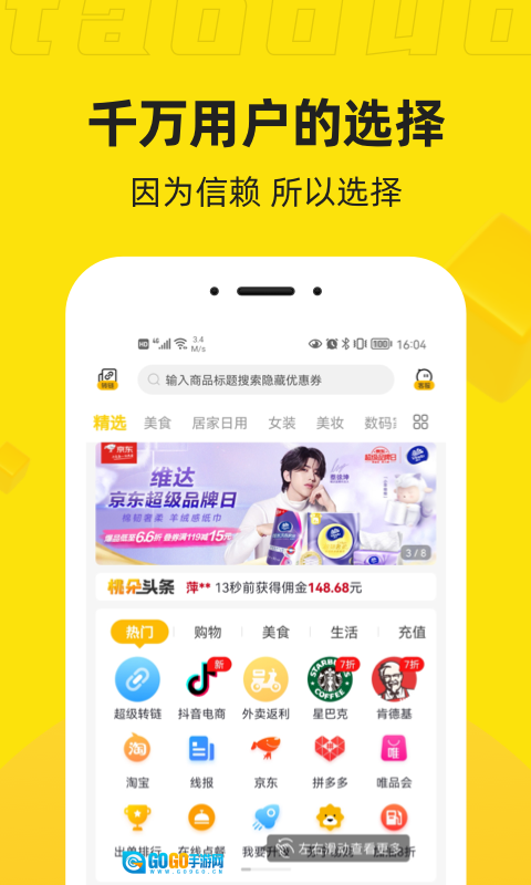 桃朵是一个独家优惠券闪购平台。该平台迎合了国内数百万网购爱好者的日常购物折扣券收集需求,汇聚了淘宝、天猫各大活动商场所有产品的海量折扣券。购买是一种收益。它可以让用户在购买时节省更多的钱。用户也不需要担心商品的质量,因为它们都是保证的正品。用户使用优惠券购买商品时可以赚取佣金。他们邀请的朋友越多,他们赚的零花钱就越多。还有许多免费的购物乐趣等着你去体验。