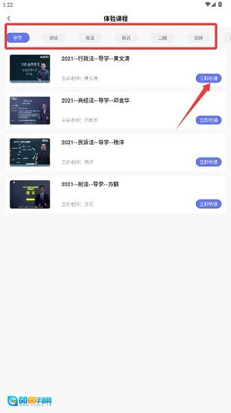 3进入应用首页后,点击“体验课程”功能选项,即可进入免费课程内容的浏览页面。