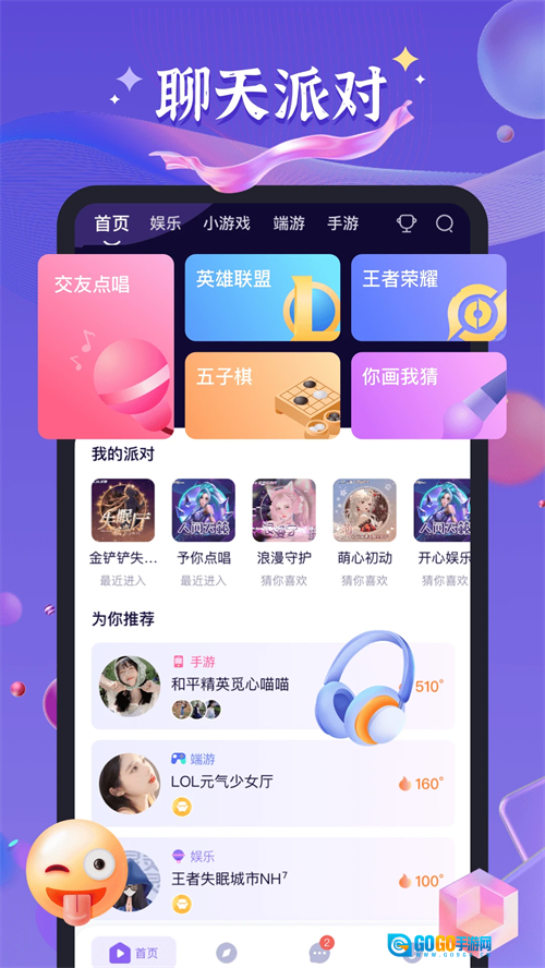 3、多人语音派对:可创建6-12人语音房,支持K歌、聊天、剧本杀、真心话大冒险等趣味玩法。