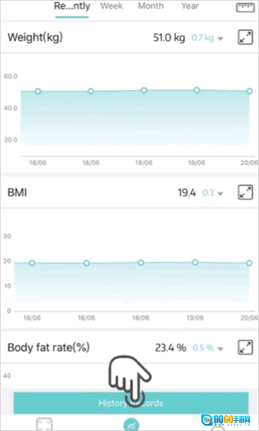 2、点击图表界面下方的【历史记录】,即可进入历史数据界面。