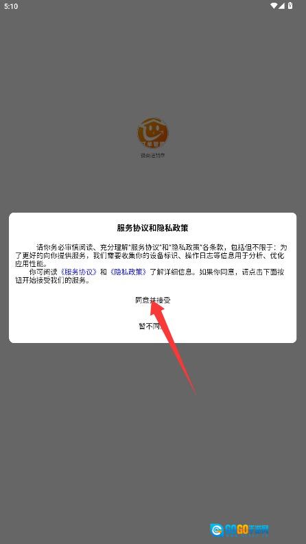 1、首次使用时,请仔细阅读平台的服务条款和隐私政策,在确认无误后,点击同意并接受按钮即可进入应用。