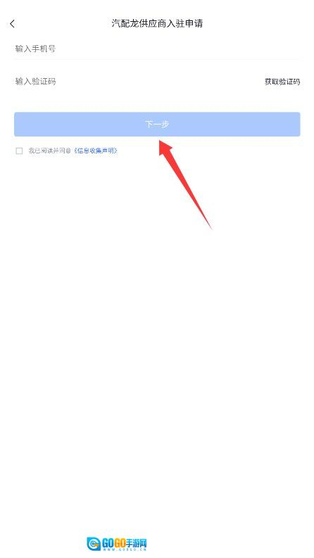 1、进入入驻申请页面后,填写手机号并输入验证码,勾选同意信息声明,随后点击“下一步”完成登录进入。