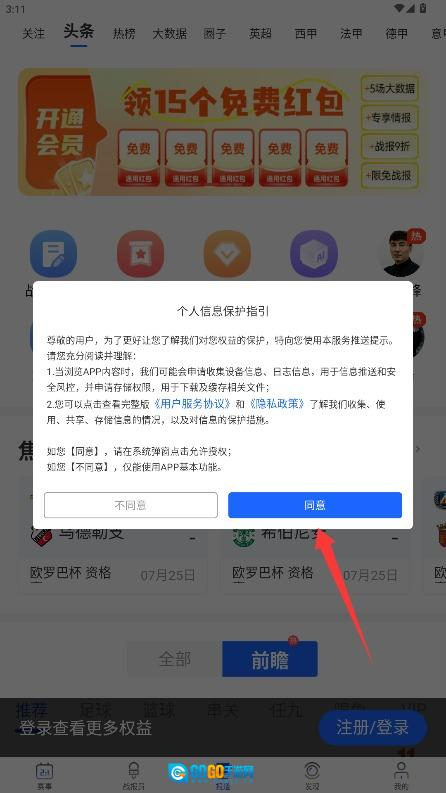 1、新手指引:注册完成后可立即领取专属礼包,礼包内包含7天高级会员权限。首次登录时会引导您设置关注的球队及联赛偏好。